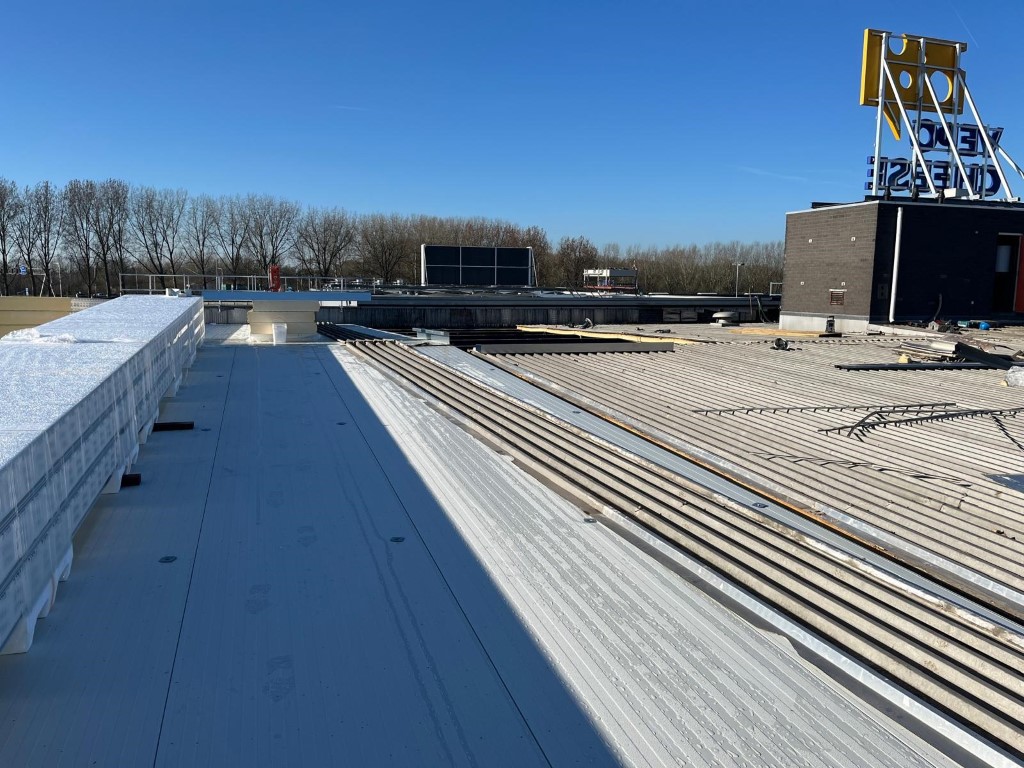 Wat een mooi project! Het ombouwen van een kouddak (metalen beplating) naar een warmdakconstructie met een sandwichbeplating en een kunststof dakbedekking bij een bedrijf als Vepo Cheese is een slimme investering, zeker gezien de strenge eisen in de voedingsmiddelenindustrie.