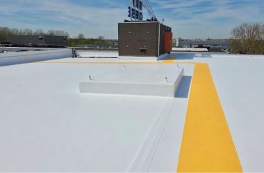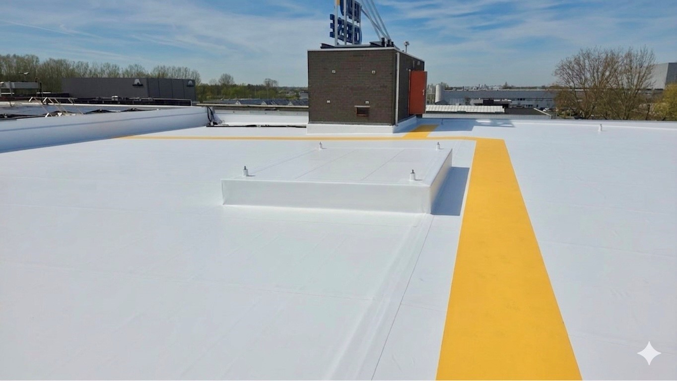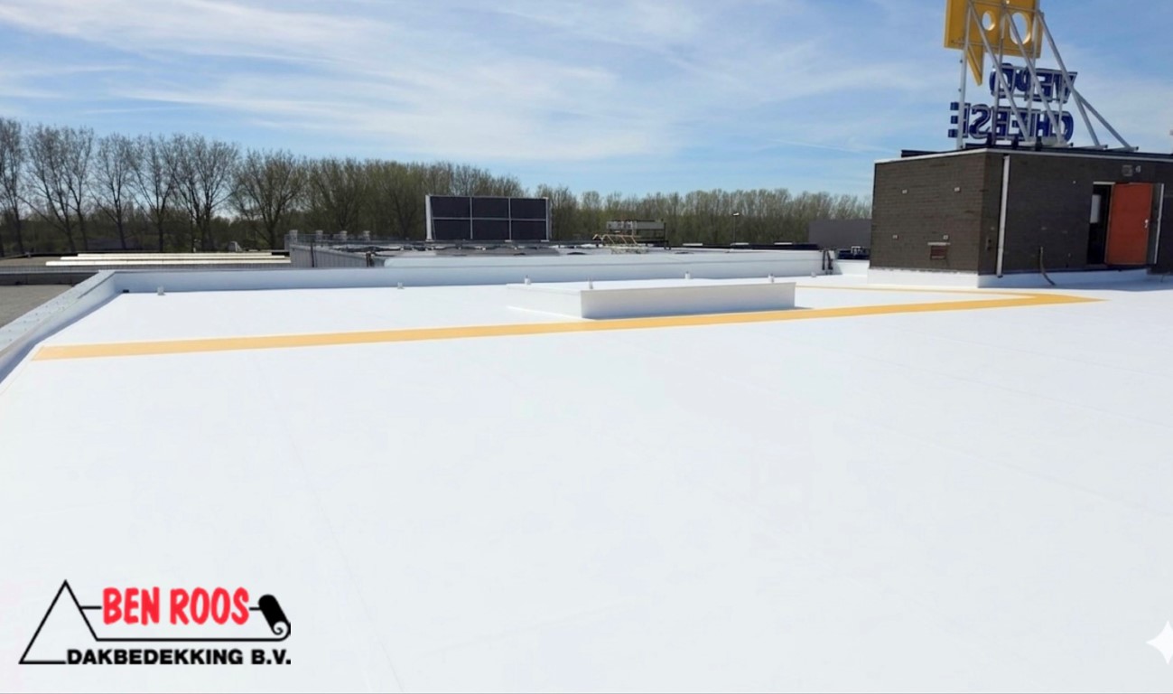 Duurzame Waterdichtheid: De kunststof PVC dakbedekking biedt een uitstekende bescherming tegen weersinvloeden en heeft een lange levensduur. Bovendien is het lichter dan traditionele bitumineuze dakbedekking en wordt aangebracht zonder open vuur.